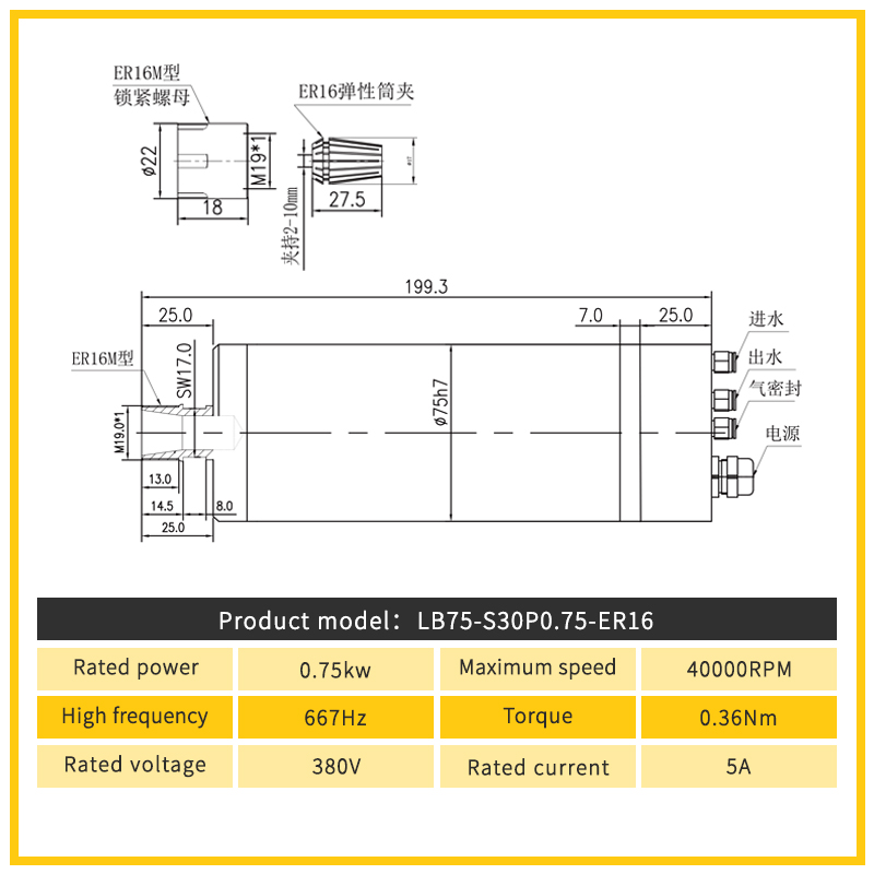 • Using P4 grade high-precision angular contact double bearings, the motor has high precision, stable operation, low noise and smooth cutting surface.