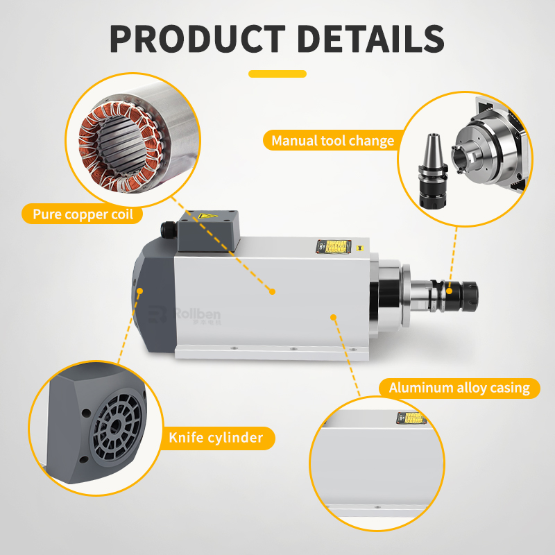- Using P4 grade high-precision angular contact double bearings, the motor has high precision, stable operation, low noise and smooth cutting surface.