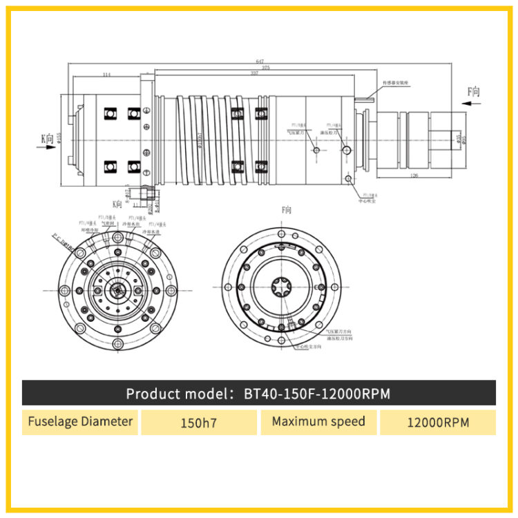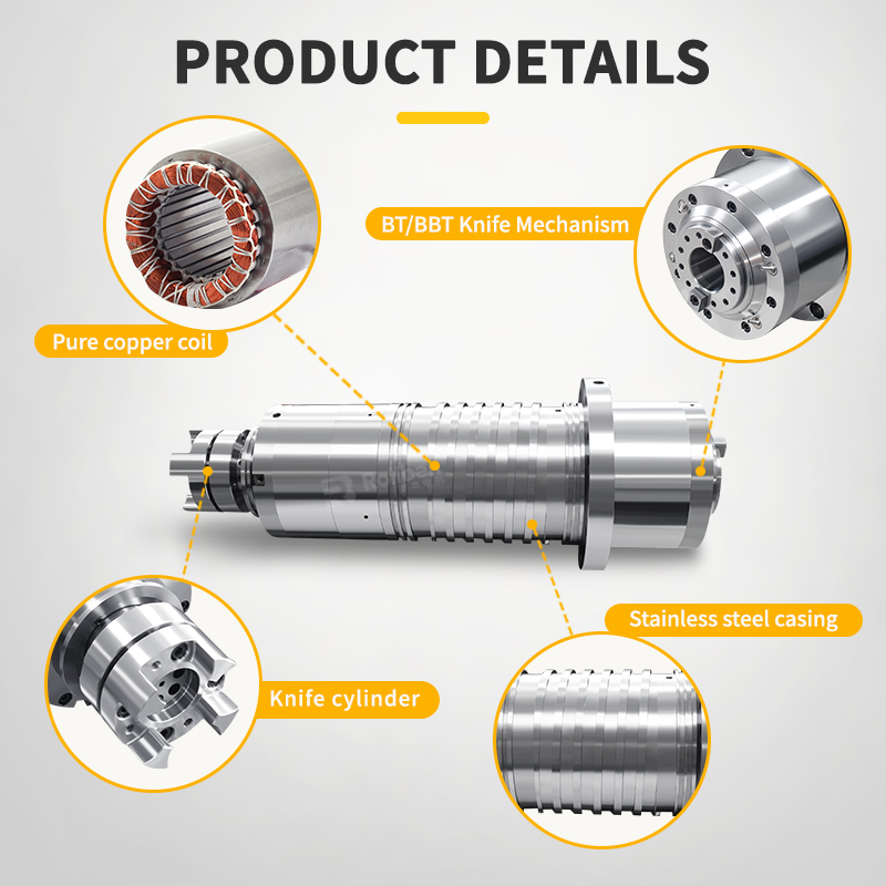 - Using P4 grade high-precision angular contact double bearings, the motor has high precision, stable operation, low noise and smooth cutting surface.