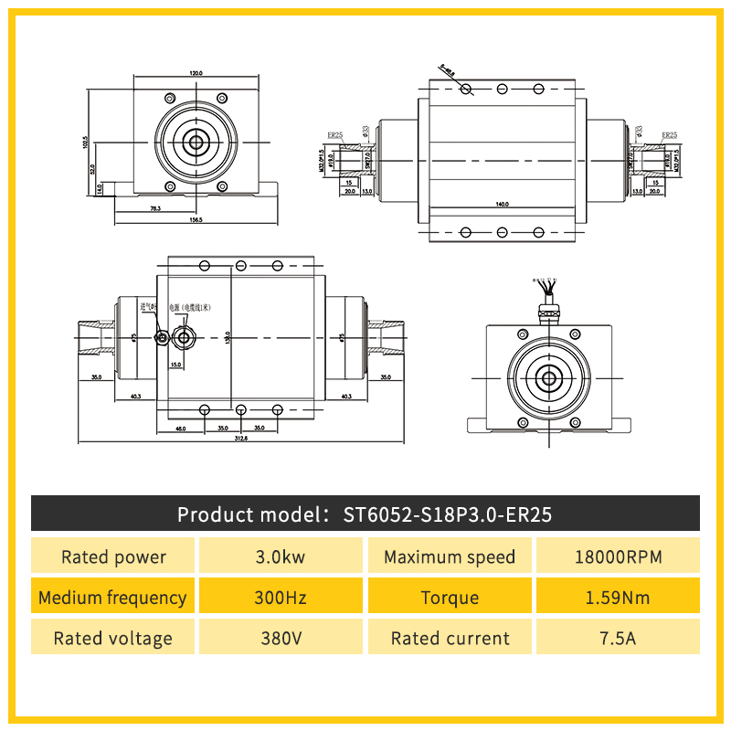 - The sawing motor speed can be selected from 3000-240000RPM, and all models can be customized non-standard, with both torque and compact size.